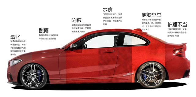 鍍晶可以讓愛(ài)車(chē)免去很多輕微劃痕困擾,將車(chē)漆與外界鳥(niǎo)糞、酸雨、紫外線等物質(zhì)完全隔絕,增加抗氧化能力、耐磨性、增加漆面強(qiáng)度。給愛(ài)車(chē)穿件透明的護(hù)身甲,何樂(lè)而不為!