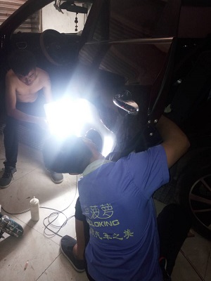 說起到濟南皇菠蘿學(xué)習(xí)那得是從去年這個時候說起了,我本來就是從事汽車鈑金噴漆行業(yè)的,去年夏天我們當?shù)叵铝艘粓鲭u蛋大小的冰雹。我以為可以因此忙上一陣,但是很多車主都說不想噴漆,問我有沒有別的法子?我說我只會鈑金噴漆,很多車主都失落的走了。其實我之前對免噴漆就可以修復(fù)車身凹陷的技術(shù)并不了解,只知道不用噴漆,但是具體的操作方法我還真不知。于是我下定決心要學(xué)習(xí)汽車凹陷修復(fù)技術(shù)這才找到了濟南皇菠蘿!