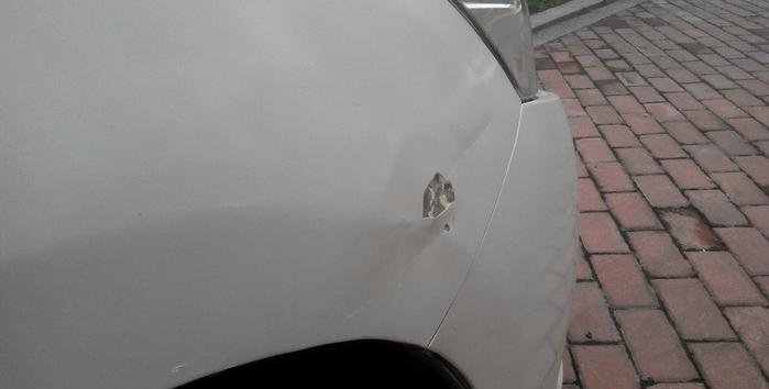 第二次施工后,王師傅確實傻眼了,看這掉下來的一大塊車漆,我都跟著心疼!